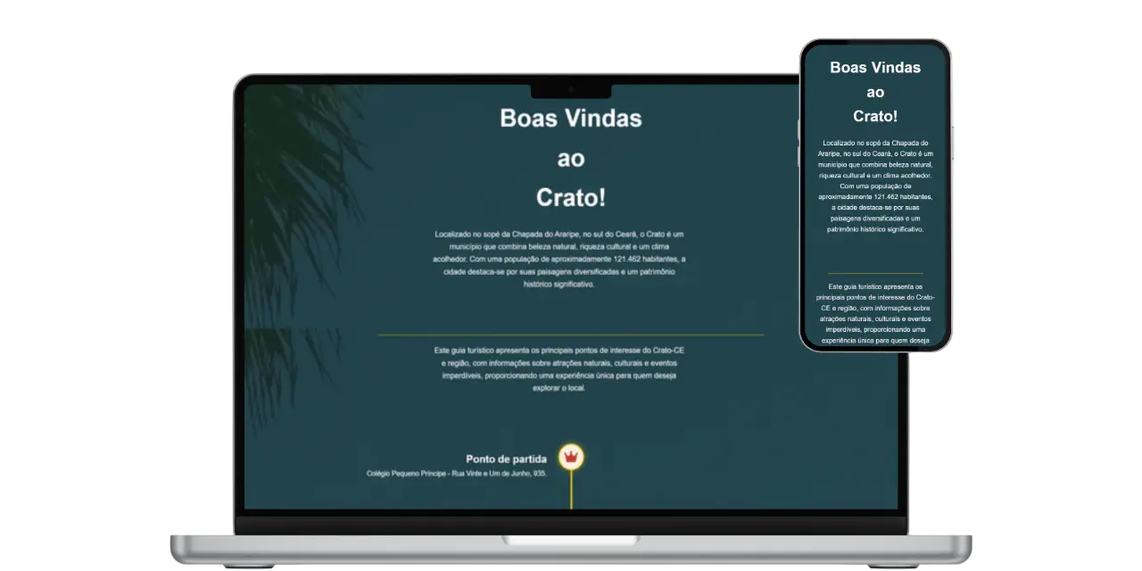 O Guia Turístico de Crato-CE apresenta os principais pontos históricos da cidade através de uma timeline interativa, com modais informativos e animações suaves para uma experiência de navegação envolvente.